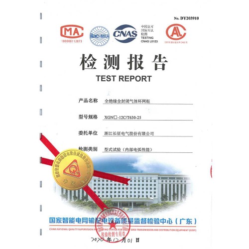 XGN□-12V/T630-25全絕緣全封閉氣體環(huán)網(wǎng)柜 檢測報告