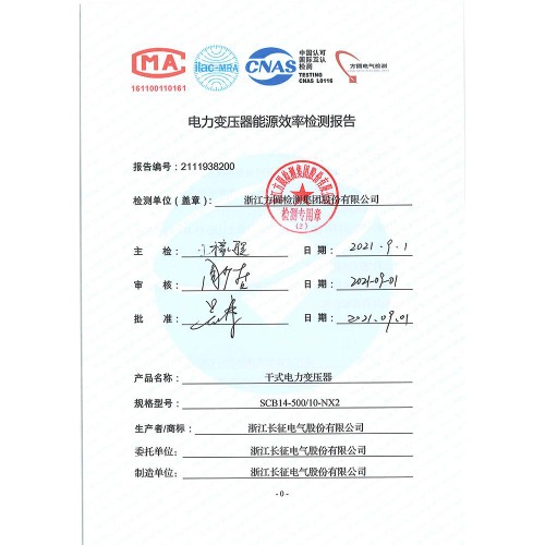 SCB14-500/10-NX2干式電力變壓器 檢測報告