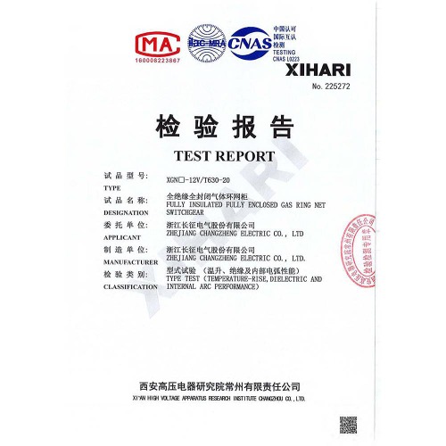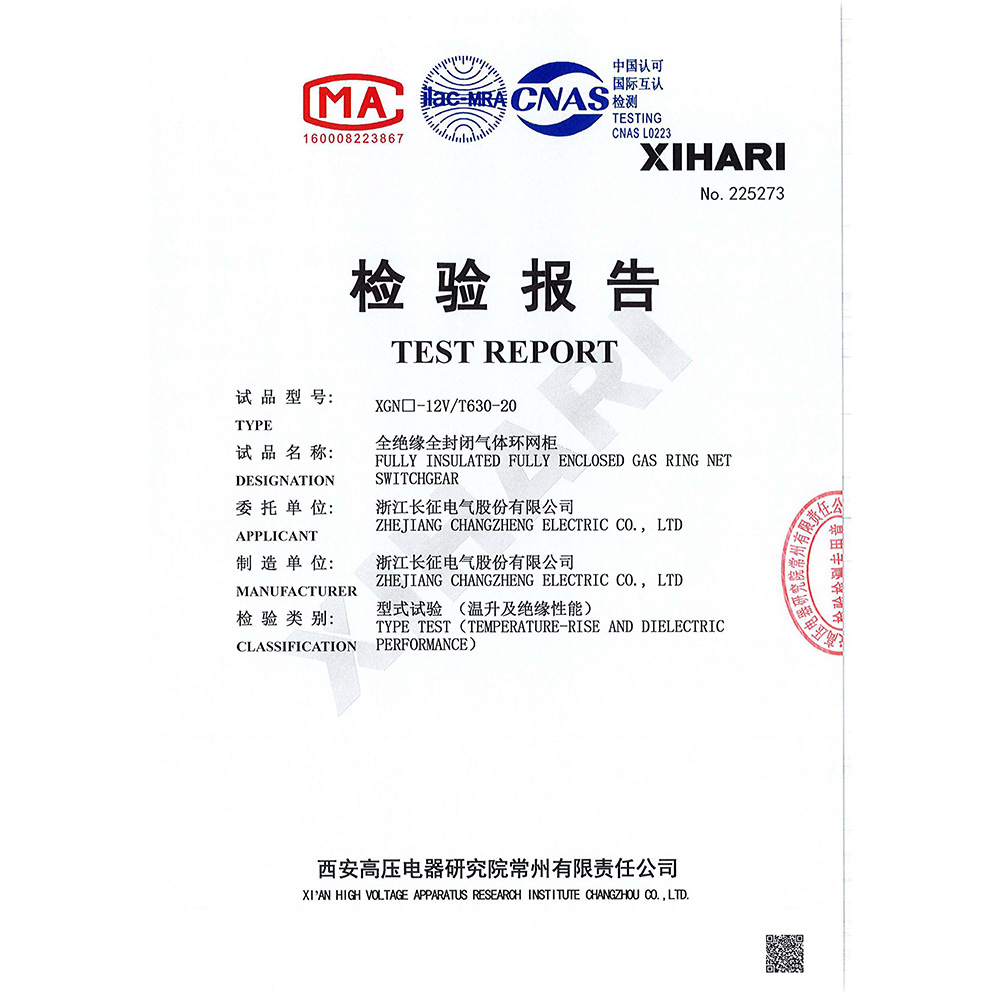 XGN□-12V/T630-20全絕緣全封閉氣體環(huán)網(wǎng)柜 檢驗報告