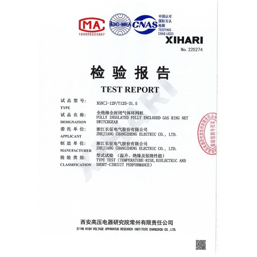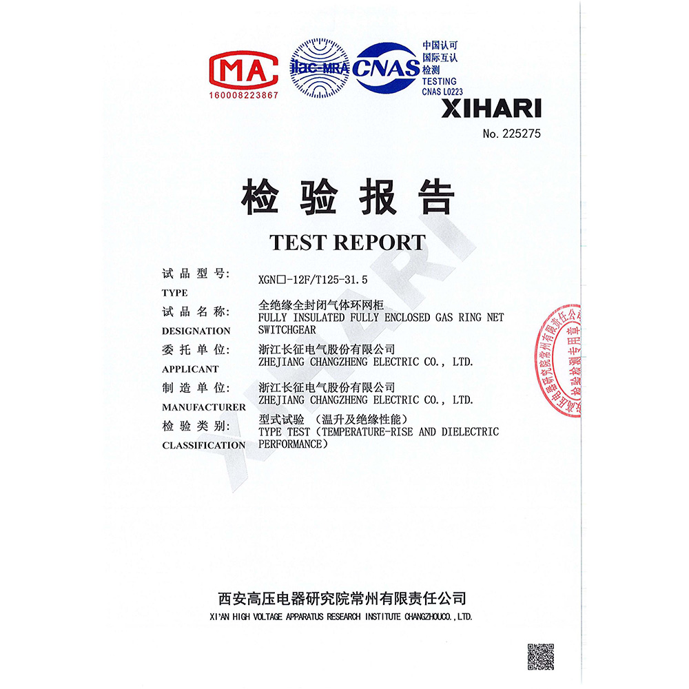 XGN□-12F/T125-31.5全絕緣全封閉氣體環(huán)網(wǎng)柜 檢驗報告