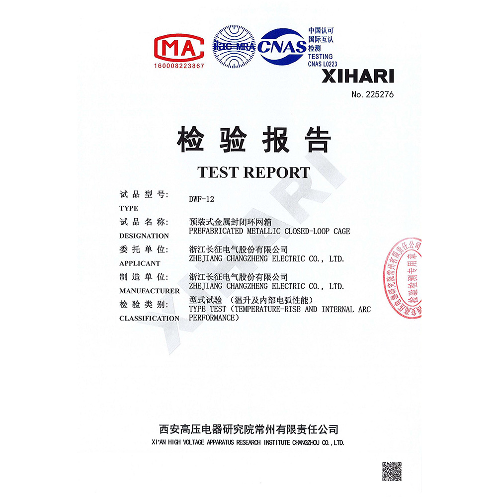 DWF-12預裝式金屬封閉環(huán)網(wǎng)箱 檢驗報告