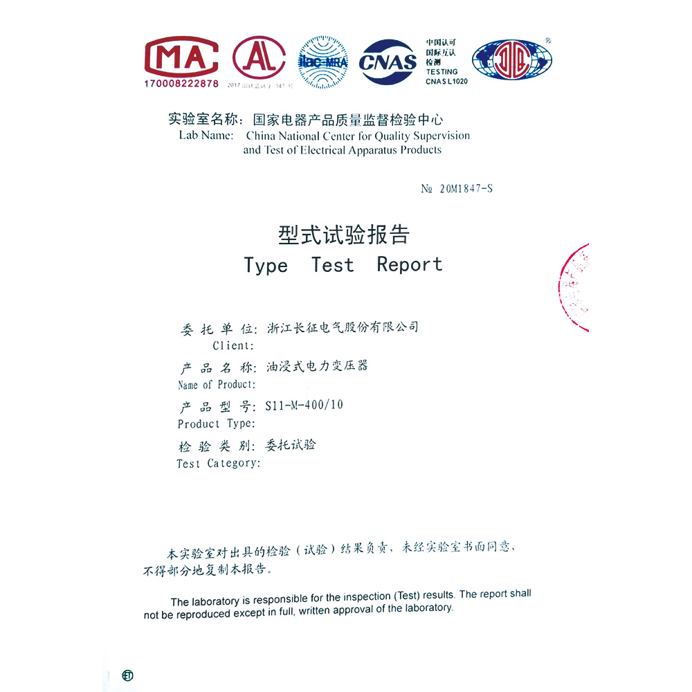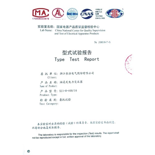 S11-M-400-10油浸式電力變壓器 型式試驗(yàn)報(bào)告