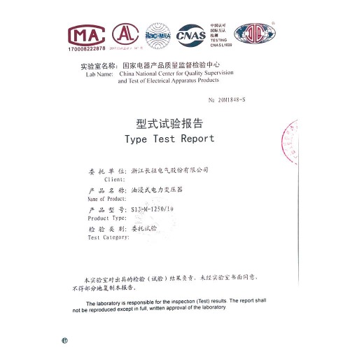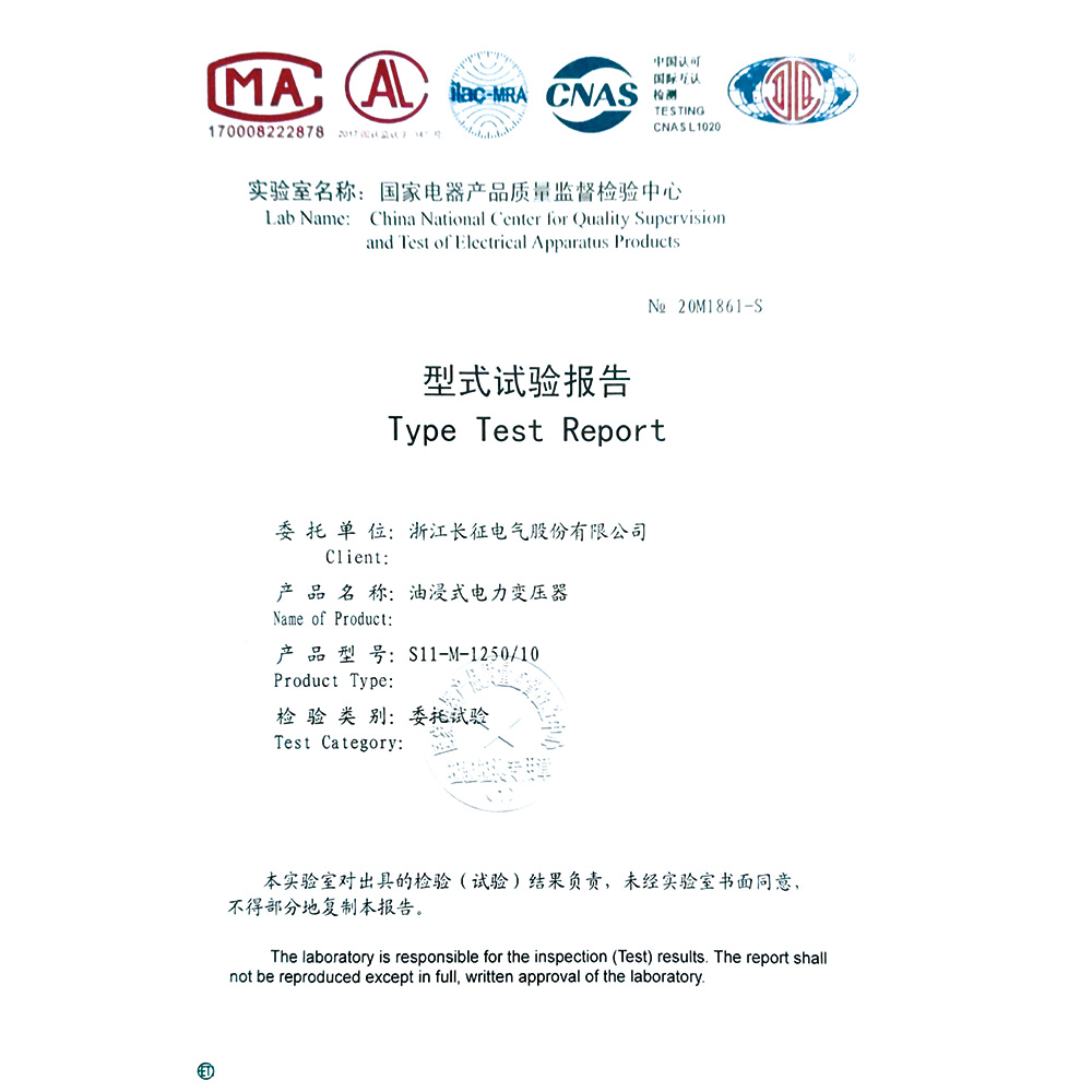 S11-M-1250/10油浸式電力變壓器 型式試驗(yàn)報(bào)告