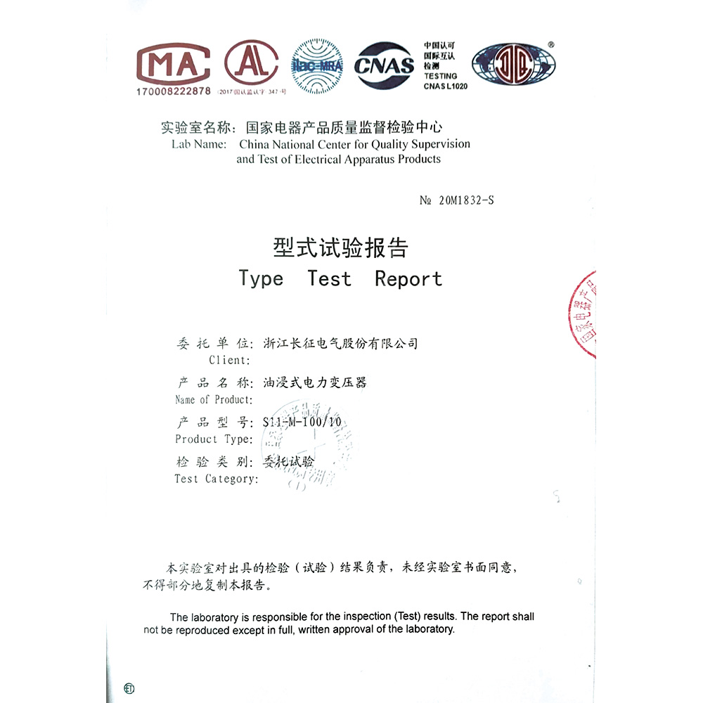 S11-M-100/10油浸式電力變壓器 型式試驗(yàn)報(bào)告