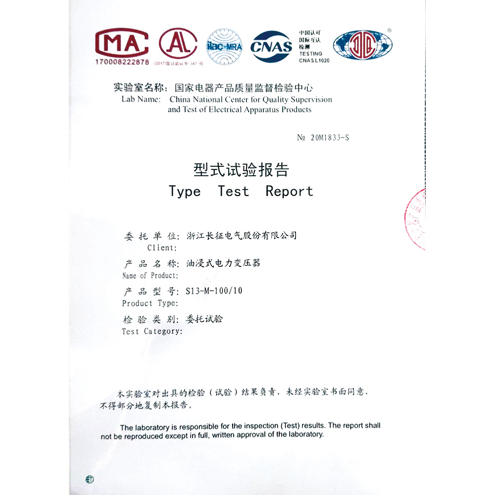 S13-M-100/10油浸式電力變壓器 型式試驗(yàn)報(bào)告