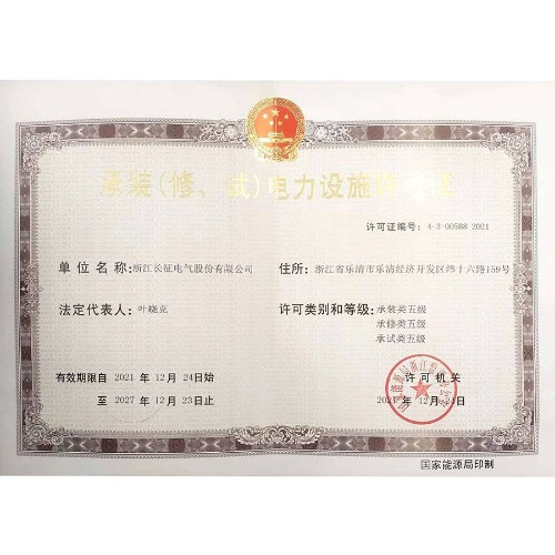 承裝(修、試)電力設(shè)施許可證