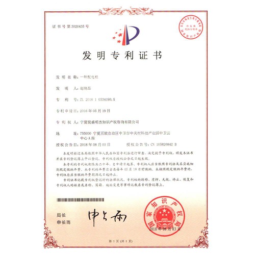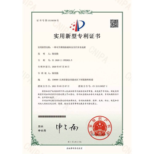 一種可升降的防破壞安全汽車充電樁 實(shí)用新型專利證書