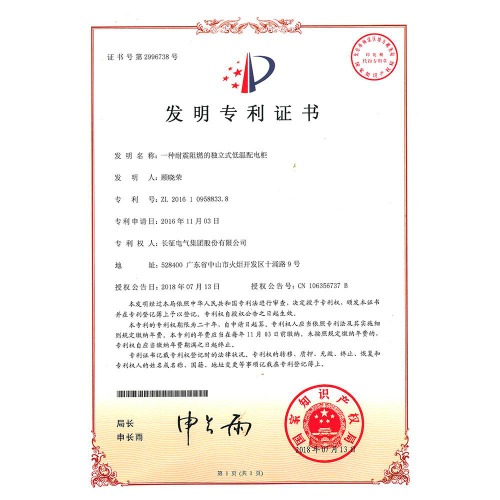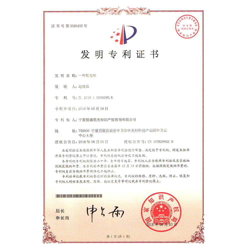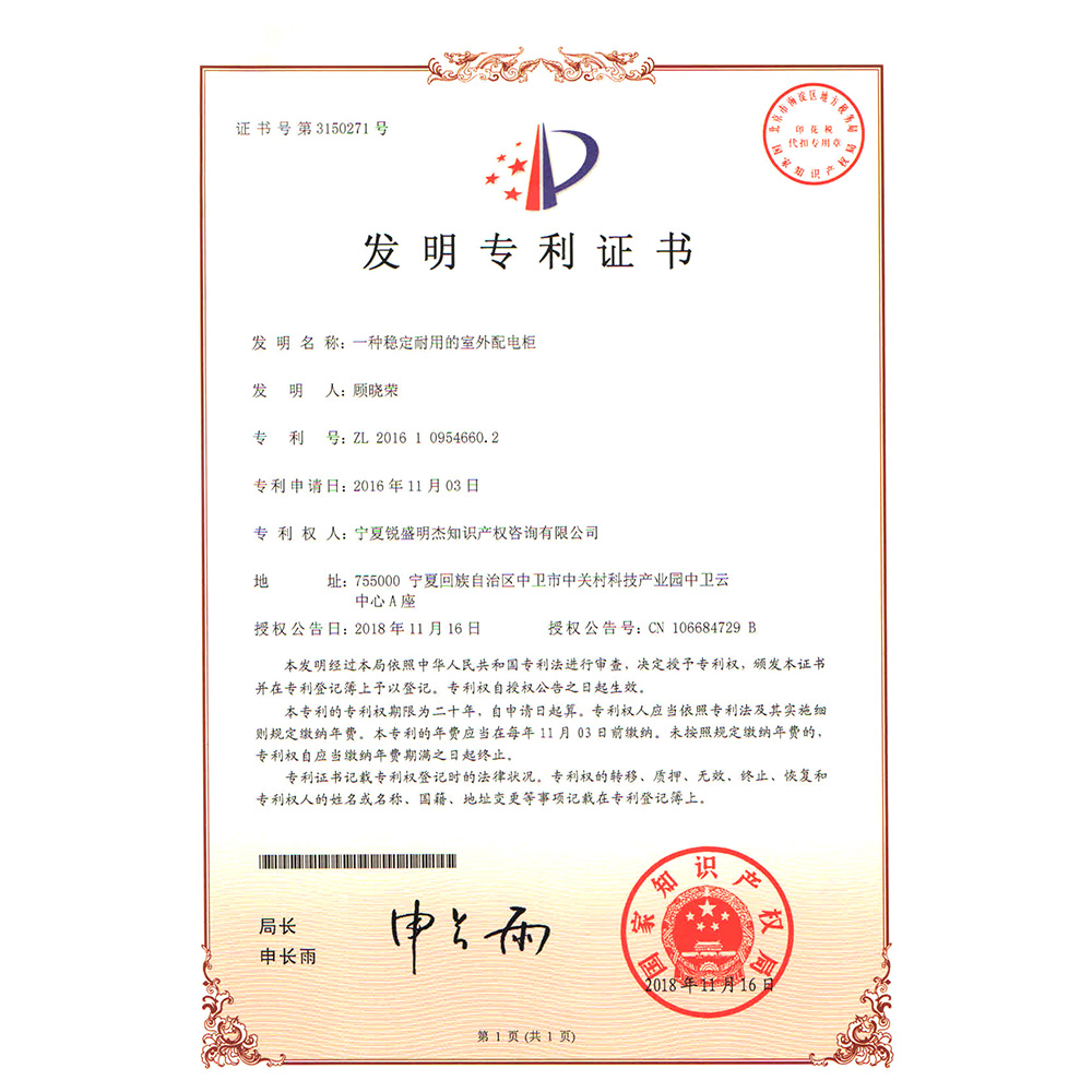 一種穩(wěn)定耐用的室外配電柜 發(fā)明專利證書