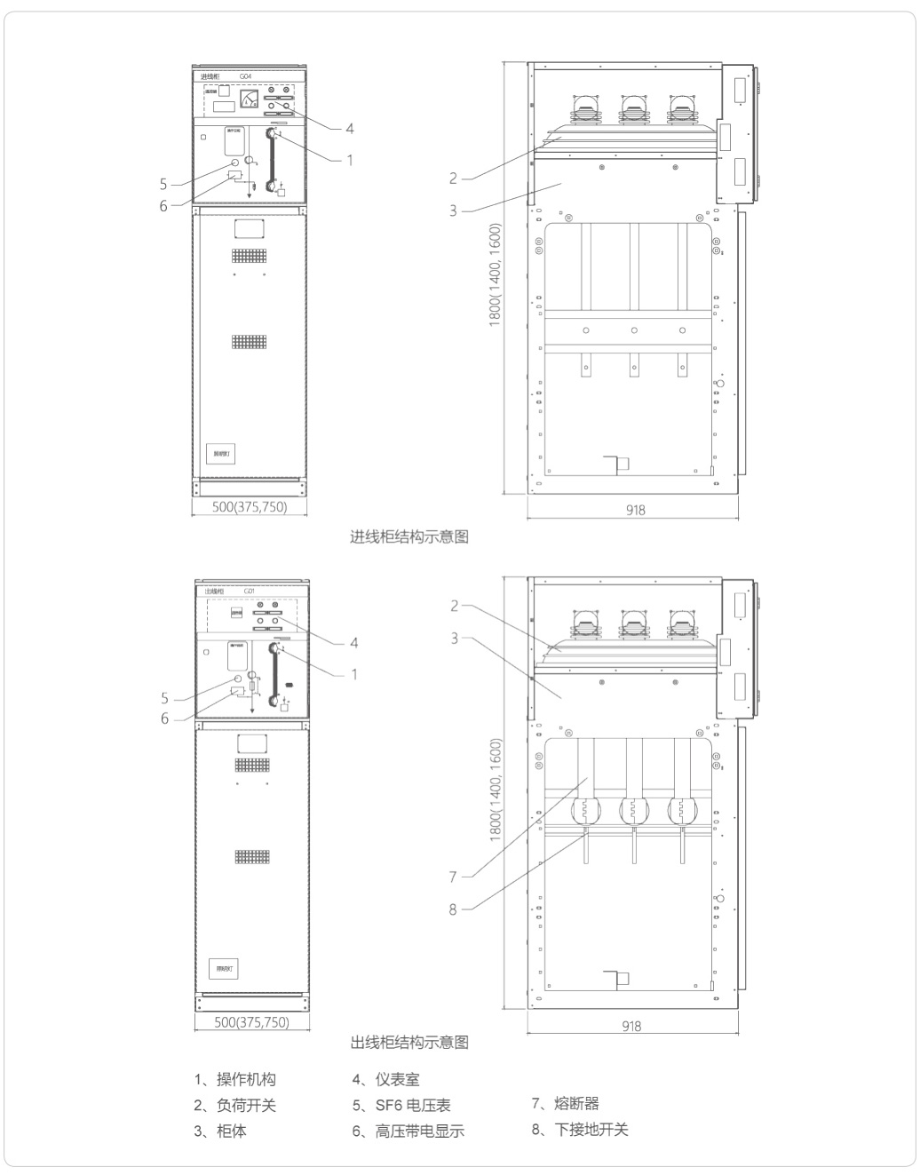 負(fù)荷開關(guān)室:開關(guān)室內(nèi)裝有一臺(tái)負(fù)荷開關(guān),負(fù)荷開關(guān)的外殼為環(huán)氧樹脂澆注而成,內(nèi)充SF6氣體作滅弧和絕緣介質(zhì),在操作軸引出端設(shè)有兩個(gè)透明的熱壓成型的塑料端蓋,透過它可以觀察觸頭狀態(tài)。開光室內(nèi)可根據(jù)客戶要求裝設(shè)SF6氣體密度表或帶報(bào)警觸點(diǎn)的氣體密度器。斷路器室:斷路器室位于柜體中部,可根據(jù)客戶需要裝配專用的真空斷路器或SF6斷路器,其開斷容量可以滿足正常投切和分支網(wǎng)絡(luò)的操作